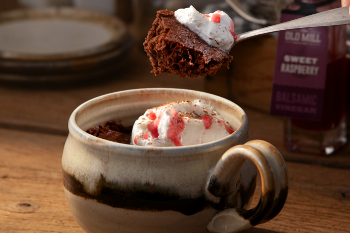 This is the kind of dessert you make when you want something sweet, but not complicated. A chocolate mug cake, ready in under two minutes, with a subtle raspberry note from our Sweet Raspberry Balsamic Vinegar. Perfect for sharing, or not, we won’t judge.